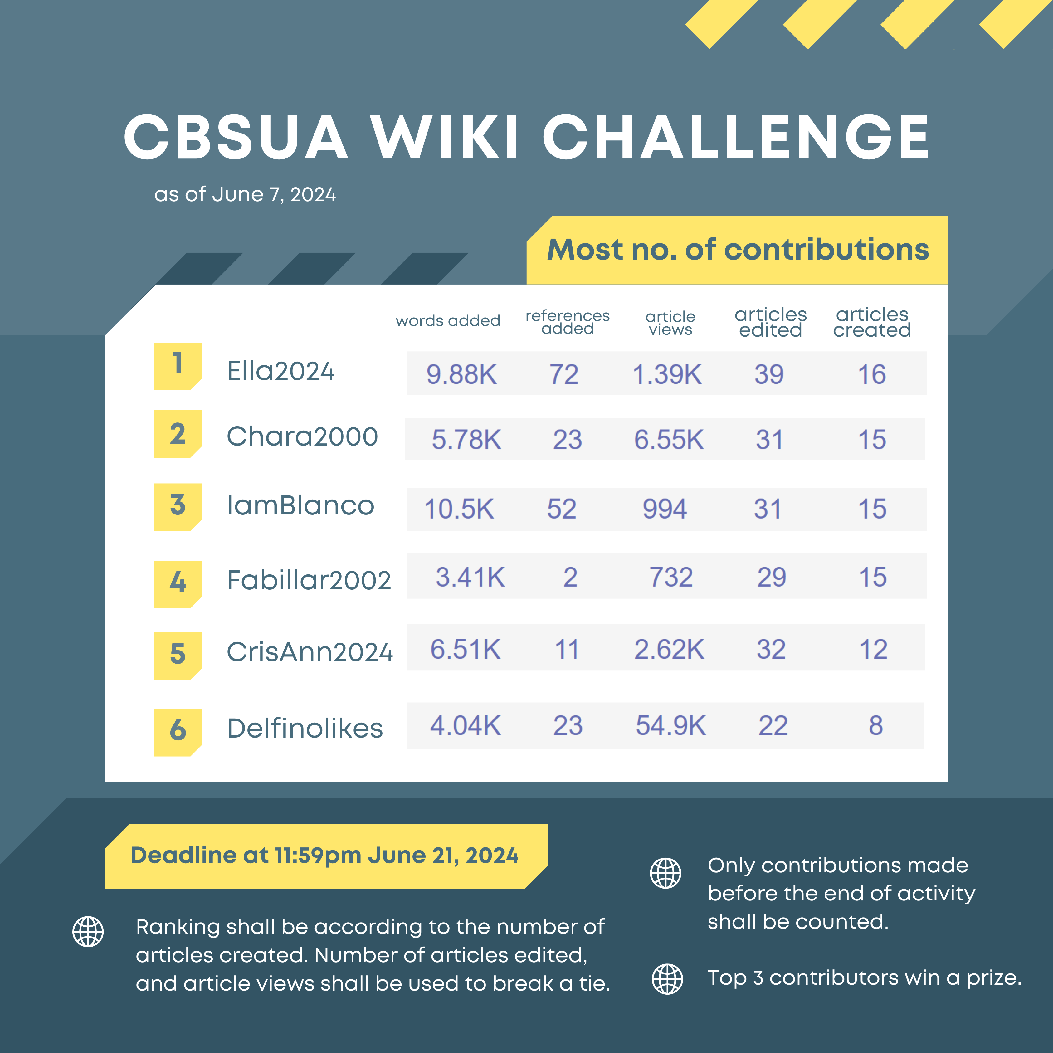 The participants still have until June 21, 11:59 PM to improve their contributions.